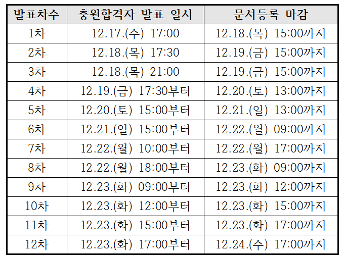 ※ 충원합격자 발표 일정은 변경 될 수 있습니다.