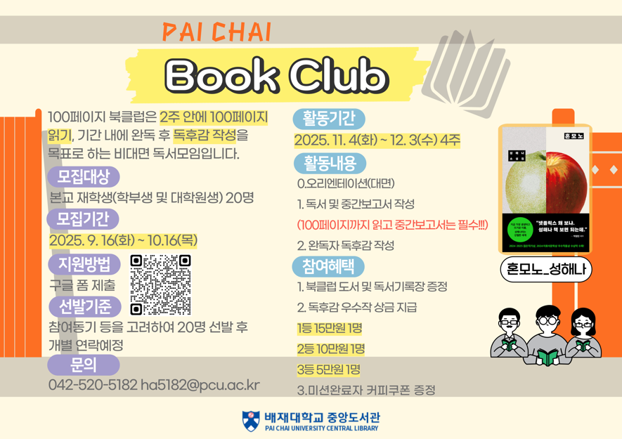 배재대학교 중앙도서관 비대면 독서모임 100페이지 북클럽 안내